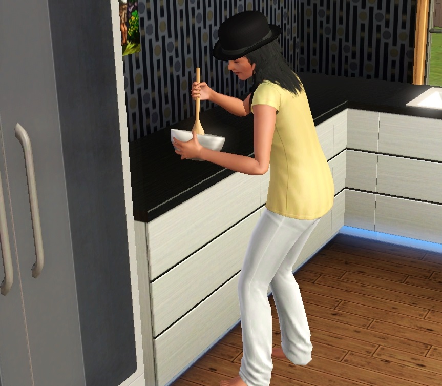 I'm pretty happy with the house improvements, but I accidentally deleted a wall that had a picture Rain painted, Shanti's portrait (seen here), and a few small decorations from a mail admirer attached to it, and I didn't realize until much later. So I guess I kind of failed the challenge, since those items were never supposed to be sold. I'm going to pretend it didn't happen though, because it's not as if they were worth much, probably less than 300 simoleans together, and that's like a drop in the ocean when it comes to their household funds. It's not cheating if it isn't done intentionally to help ease gameplay, right? (he tells himself). Lol. I'm pretty bummed about losing the portrait, though. :(